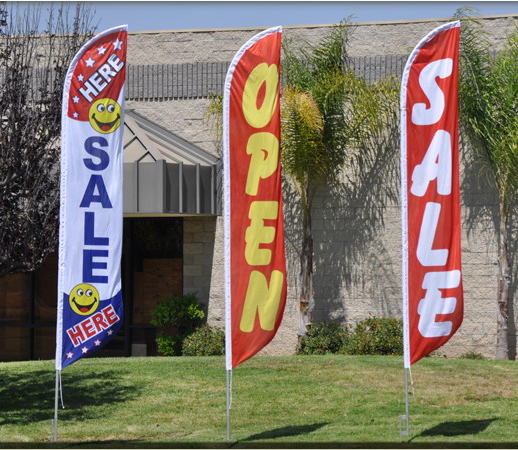 We have over 1000 different feather flags available for all types of businesses including Restaurants, Auto Repair, Auto Dealerships, Cell Phone Companies, & more. Please use the subcategories on the left to narrow your search by your business type.