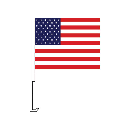 Flags are sewn on a white sleeve which is attached to a 20 inches tall durable white plastic staff with molded clip.