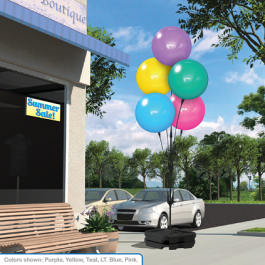 This kit has everything you need including one 18”x17”x5” durable water/sand base, a thick 6061 aluminum cluster pole, 5 of the industries toughest 41" coated fiberglass stems, 5 upper holding cups and 5 DuraBalloons®