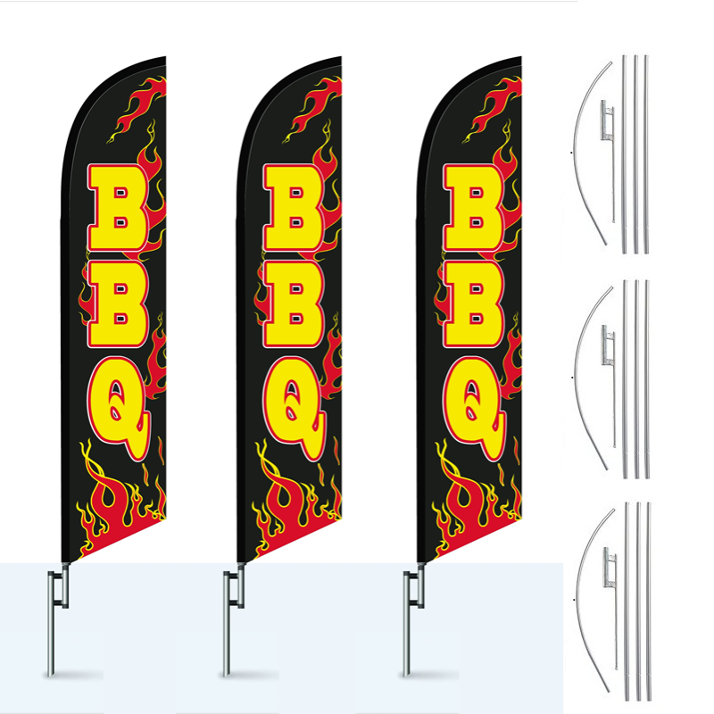This Feather Flag, also called a Feather Banner, has a vibrant colored background with bold graphics and text. Great for the front of your business or out by the road, this flag will flutter & flap with a slight breeze.